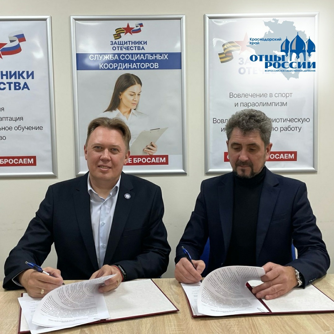 Краснодарское отделение подписало соглашение о сотрудничестве с филиалом фонда «Защитники Отечества» на Кубани Вчера руководитель филиала фонда «Защитники Отечества» в Краснодарском крае Александр Старовойтов и председатель местного отделения ВОД «Отцы России» Павел Ерагер подписали официальный документ о взаимодействии.
