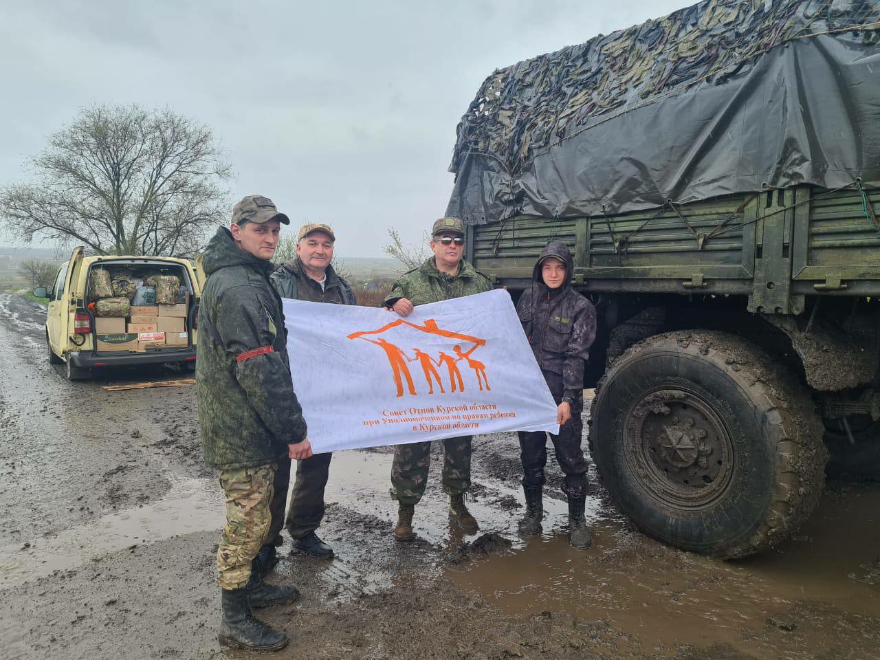 Отцы Курска привезли на передовую пасхальные подарки и гуманитарную помощь бойцам Совет отцов при Уполномоченном по правам ребёнка в Курской области в очередной раз посетил наших бойцов на передовой. Кроме гуманитарной помощи отцы передали нашим защитникам письма и пасхальные подарки от учеников школ №9, 40 и 58.