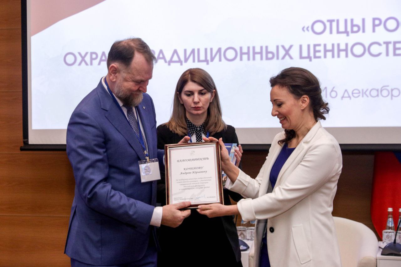Награждение лидеров движения. Отцы, спасибо вам за работу! На Пленарном заседании Председатель правления ВОД «Отцы России» Андрей Коченов получил Благодарственное письмо от Председателя партии «Единая Россия» Дмитрия Медведева за реализацию совместных практик в семейной сфере.