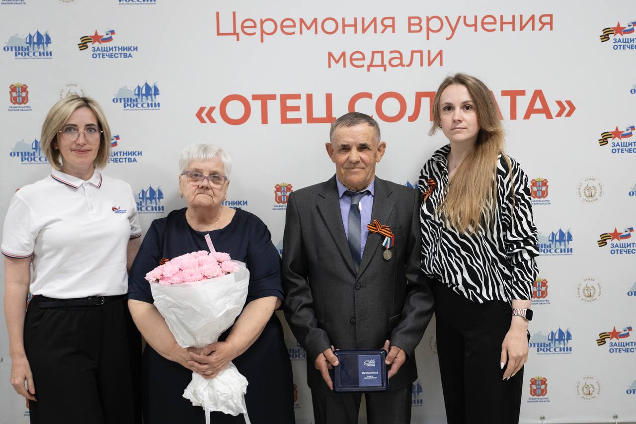 В Омской области вручили награды общественного признания отцам героев специальной военной операции Торжественная церемония награждения медалью общественного признания «Отец солдата» в этом году приурочена к празднованию 80-летия Победы в Великой Отечественной войне и объявленному Президентом России Году Защитника Отечества.