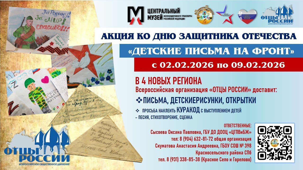 В Санкт-Петербурге подвели итоги творческого конкурса и дали старт акции «Детские письма на фронт» 29 января в петербургском Музее Мостов состоялась торжественная церемония награждения победителей и призеров открытого межрегионального творческого конкурса макетов и рисунков «Дорогами войны к Великой Победе», посвященного 82 годовщине полного снятия блокады Ленинграда.