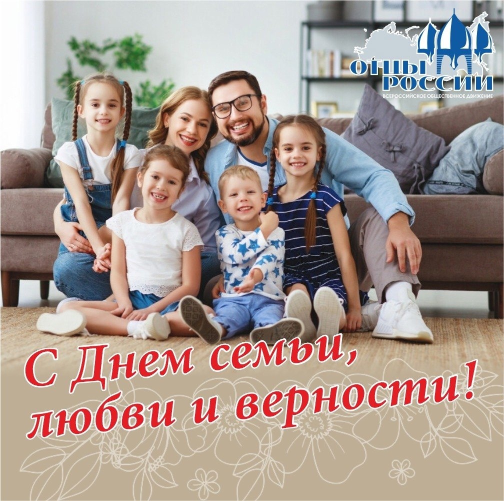 Дорогие друзья, поздравляем вас с Днём семьи, любви и верности! Наше отцовское движение начиналось с простого, но очень важного лозунга: «Отцы России за многодетную семью».