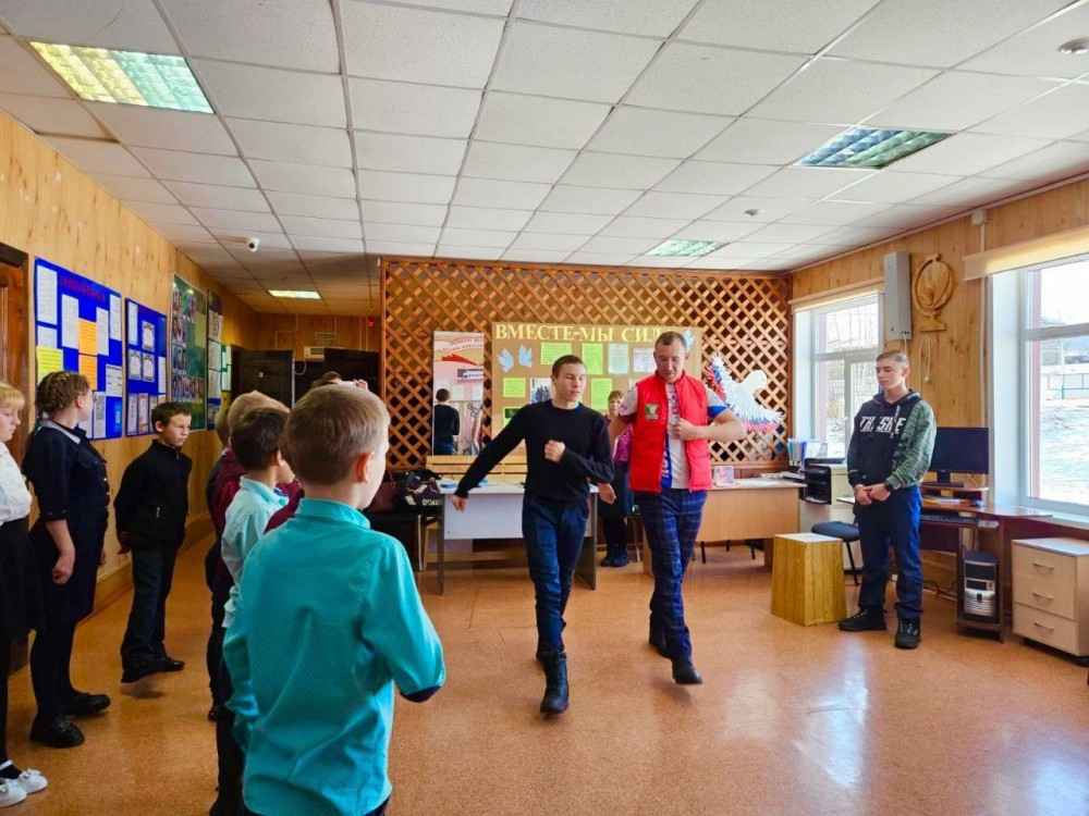 Председатель Совета отцов Сергей Бурков совместно со специалистом по профилактике наркомании районной администрации и представителями «Движение первых» провели в Тимошинской школе профилактический квиз «Сеть». А в рамках проекта «Хранители истории» для ребят состоялось занятие по строевой подготовке. Ребятам показали строевой шаг, а затем они отработали вынос Государственного флага Российской Федерации в группах по три человека.