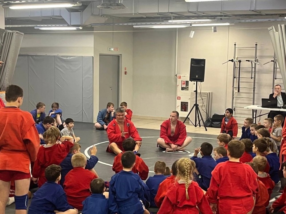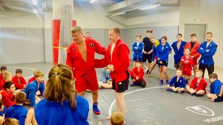 Олег Николаевич поделился с ребятами богатым борцовским опытом, показал свои коронные приёмы, разобрал ошибки юных самбистов.