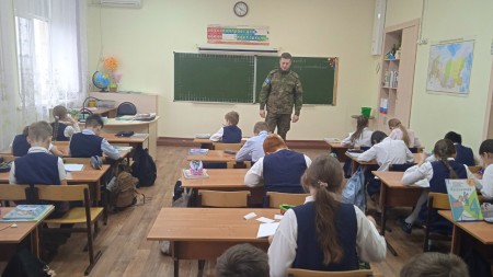 Ученики 4 класса на патриотических открытках написали пожелания солдатам, находящихся на службе в зоне СВО.