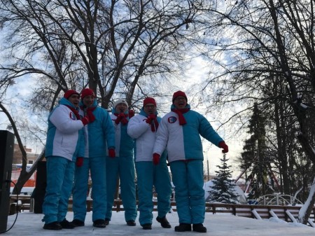 Папы исполнили всеми любимые новогодние песни: «Зима-холода», «Звенит январская вьюга», «Расскажи, Снегурочка» из кинофильма «Ну, погоди!» и другие. У каждого хора была своя мощная группа поддержки – все папы пришли со своими семьями.