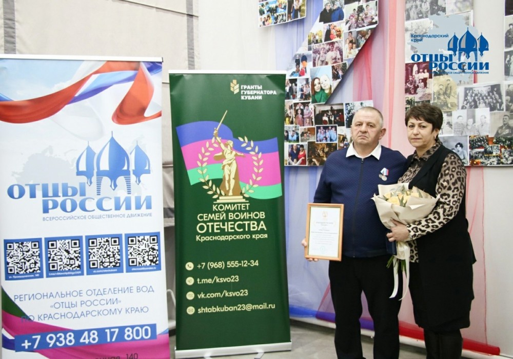 Медаль отцу вручили председатель регионального отделения Всероссийского общественного движения «Отцы России» в Краснодарском крае Павел Ерагер и координатор краевого штаба КСВО Надежда Бойко. Комитет семей воинов Отечества в регионе также выразил благодарность матери и отцу Романа, вручив им благодарственные письма.