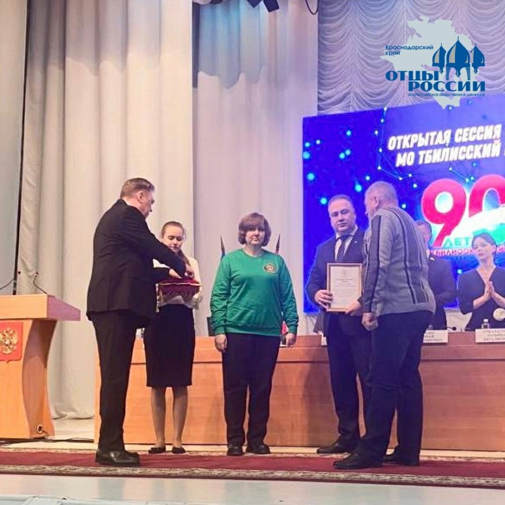Сегодня на открытой сессии совета МО Тбилисского района представители регионального отделения ВОД «Отцы России» в Краснодарском крае совместно с координатором штаба Комитета Семей Войнов Отечества в регионе Надеждой Бойко вручили очередную награду общественного признания «Отец солдата».