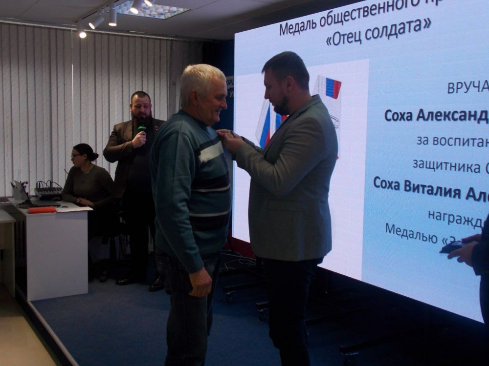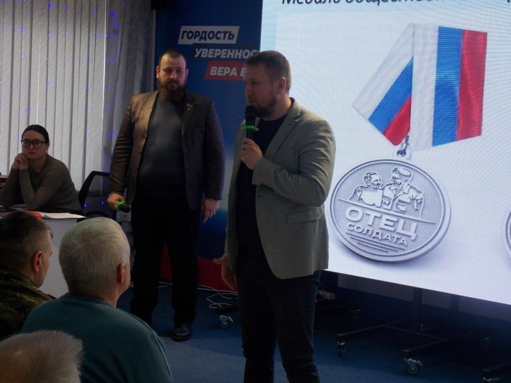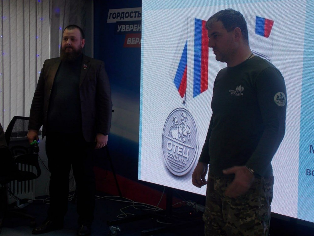 Сегодня в Штабе общественной поддержки ЛРО партии «Единая Россия» состоялось торжественное вручение медалей «Отец солдата», посвященное предстоящему Дню защитника Отечества.
