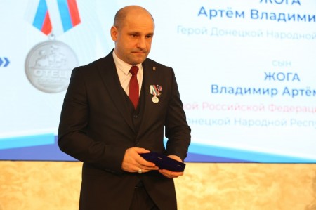 Первым награждаемым стал Артём Жога, председатель Народного Совета ДНР, отец Героя России и Героя ДНР. Артём Владимирович поблагодарил всех за память о воинах и выразил надежду, что в Год семьи все парни, которые несут сегодня вахту на передовой, вернутся домой и окажутся в кругу семьи.