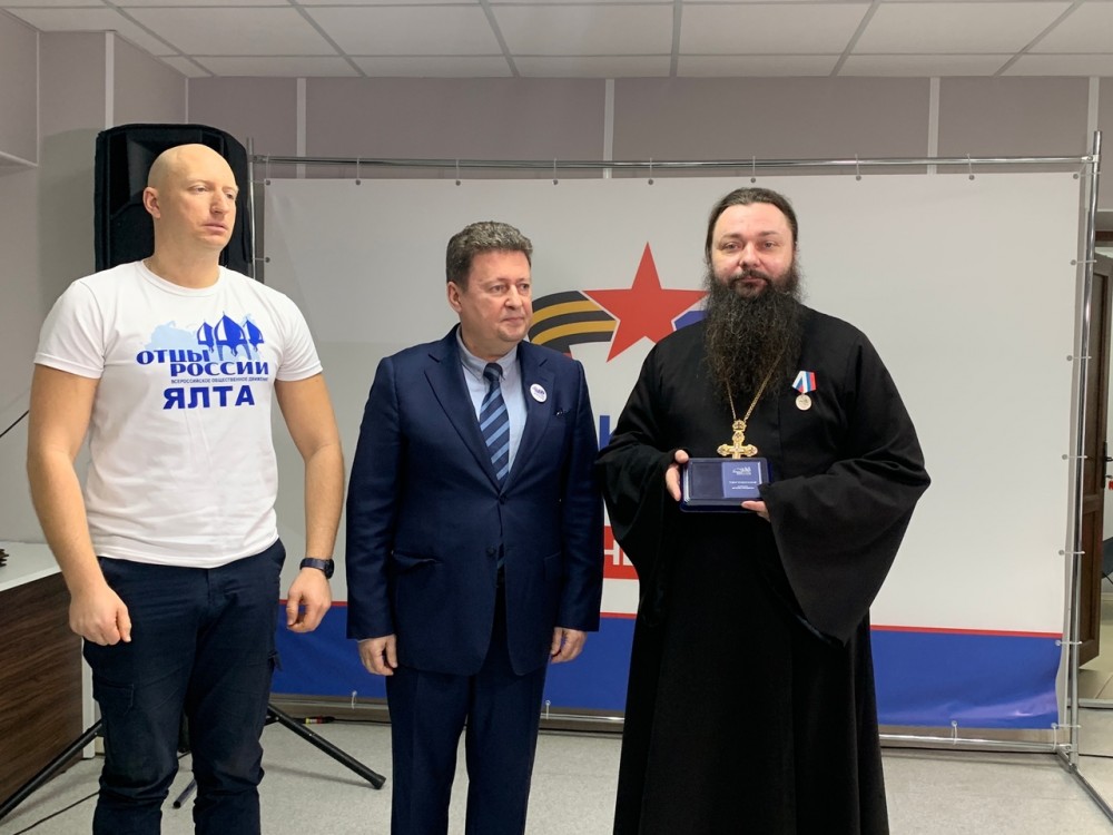 В Симферополе на базе Фонда поддержки СВО «Защитники Отечества» прошло третье награждение отцов Крыма медалями общественного признания «Отец солдата».