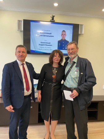 Пользуясь возможностью, трудовой коллектив института также тепло пообщался с семьей военнослужащего. Сотрудники учебного заведения поблагодарили семью за воспитание настоящего героя, поздравили с наградой общественного признания «Отец солдата» и провели для Юрия Витальевича и Елены Александровны экскурсию по институту.