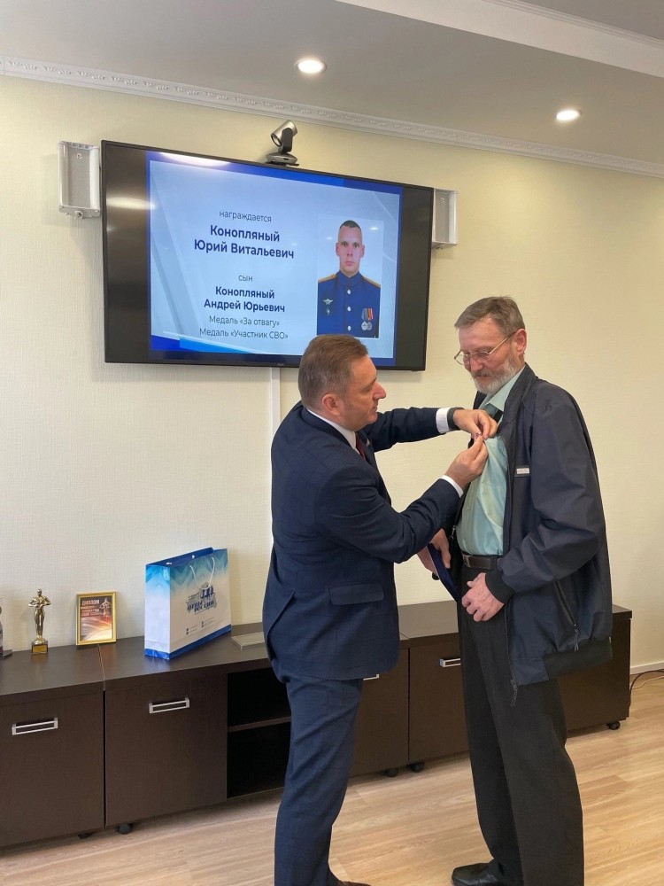 Сегодня в ИПКА Белгородского ГАУ состоялось торжественное вручение медали «Отец солдата». Награду получил Конопляный Юрий Витальевич. Его сын Конопляный Андрей Юрьевич — участник СВО на Украине с начала операции. За мужество и героизм при выполнении боевых задач награжден медалями «За отвагу» и «участник СВО».