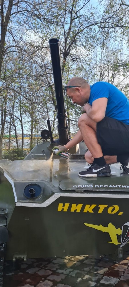 Члены Правления Совета отцов Республики Алтай и Союза десантников подготовили к Параду Победы военную технику на мемореальном комплексе «Парк Победы» в Горно-Алтайске. Участники акции помыли и покрасили боевые машины, почистили территорию.