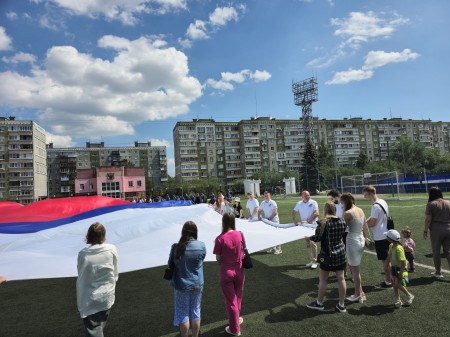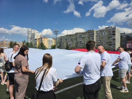 Участники ВОД «ОТЦЫ РОССИИ» по Нижегородской области поучаствовали в развертывании самого большого российского флага, в преддверии Дня России.