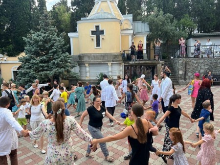 В честь Дня семьи, любви и верности в Ялте состоялся тематический флешмоб «Семейный круг», организованный городским подростково-молодёжным центром при поддержке Ялтинского благочиния и общественных организация «Матери России» и «Отцы России».