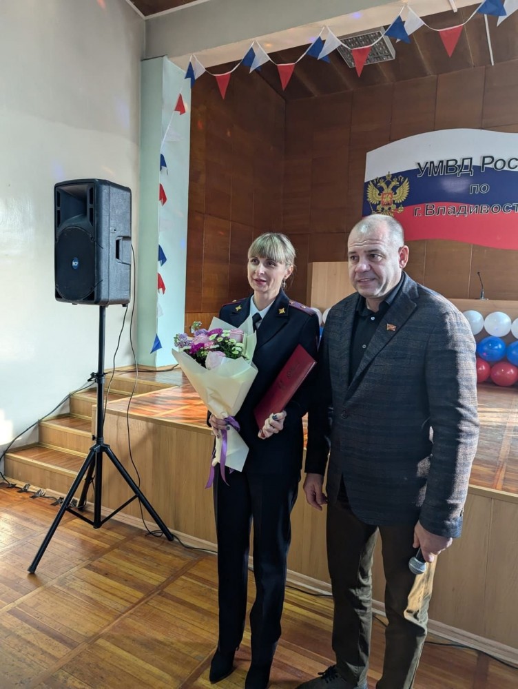 Торжественное собрание прошло в Управлении МВД России по городу Владивостоку. Депутат поблагодарил сотрудников полиции и ветеранов за выбор профессии, мужество и служение Отечеству и вручил нескольким сотрудникам Благодарственные письма городской Думы. Он также передал слова признательности защитникам порядка в тылу от военнослужащих 155-й бригады морской пехоты ТОФ и добровольческого отряда «Тигр», находящихся сегодня на передовой.