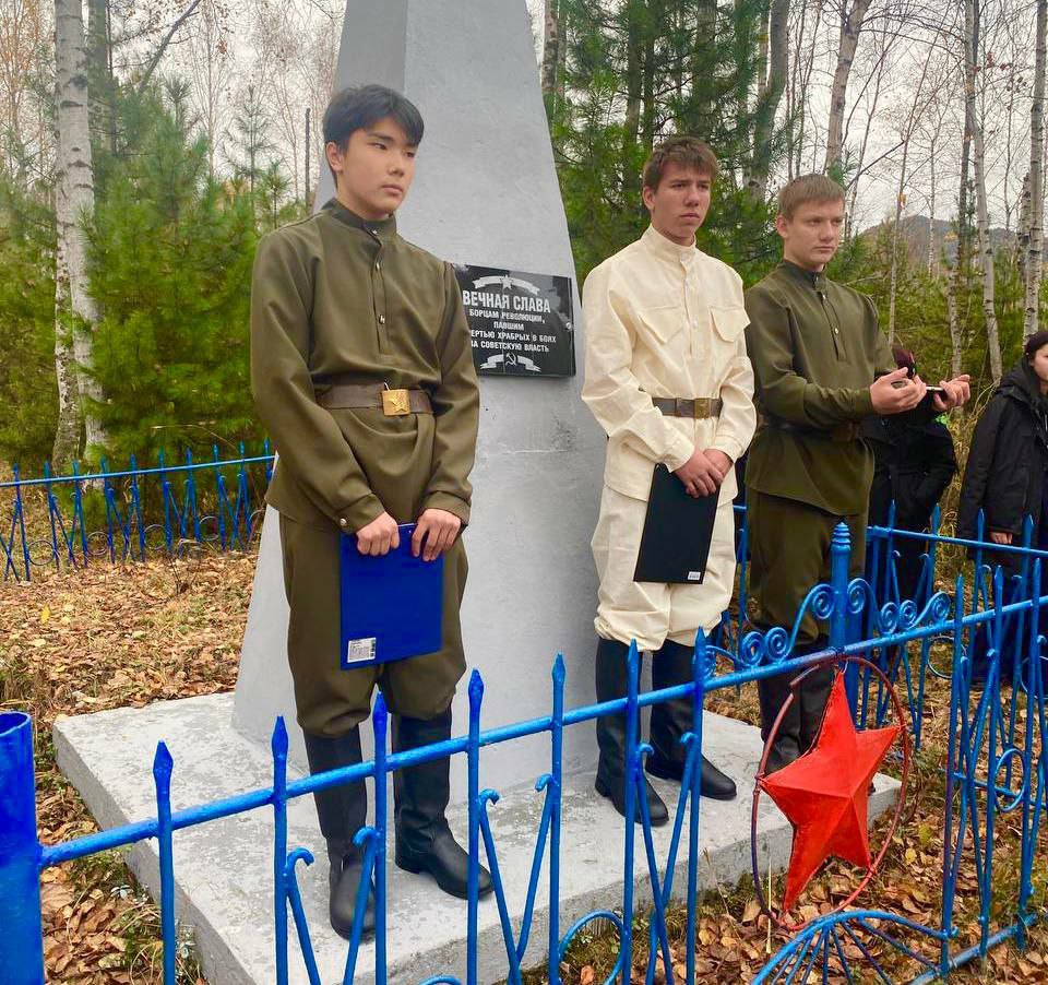 В рамках проекта «Дорогами Гражданской войны в Южном Прибайкалье» вместе со старшеклассники района отцы восстановили памятник, поставленный на братских могилах красногвардейцев.