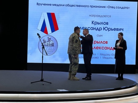 На церемонии также вручили медали общественного признания «Отец солдата» и поблагодарили родителей, воспитавших защитников Отечества.