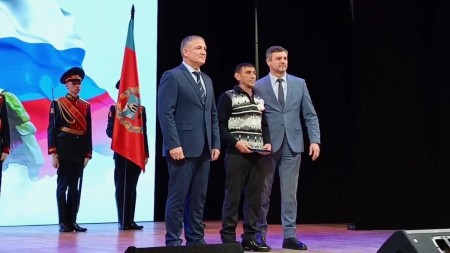 Мероприятие открыл Губернатор края Виктор Томенко. Он вручил Золотую Звезду семье погибшего Героя России Игоря Михайловича Иванова, а также государственные награды Российской Федерации и Алтайского края.