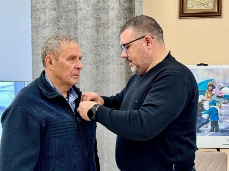 Вчера Председатель правления Рязанского регионального отделения Всероссийского общественного движения «Отцы России» Роман Захаров вручил медаль общественного признания «Отец солдата» Виктору Мироновичу Ульянову, отцу погибшего на СВО Владимира Ульянова.