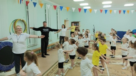 А сегодня зарядка и общение с детьми прошли в в «Центре развития ребенка — МАДОУ детский сад №4».