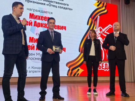 Накануне Дня Победы в школе №1 города Кондрова Калужской области прошла церемония награждения медалью общественного признания «Отец солдата».