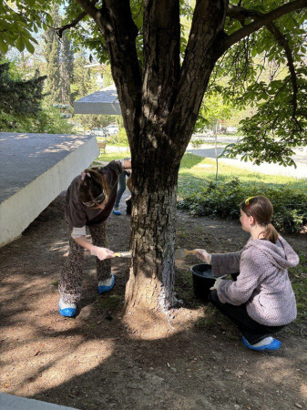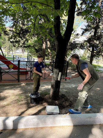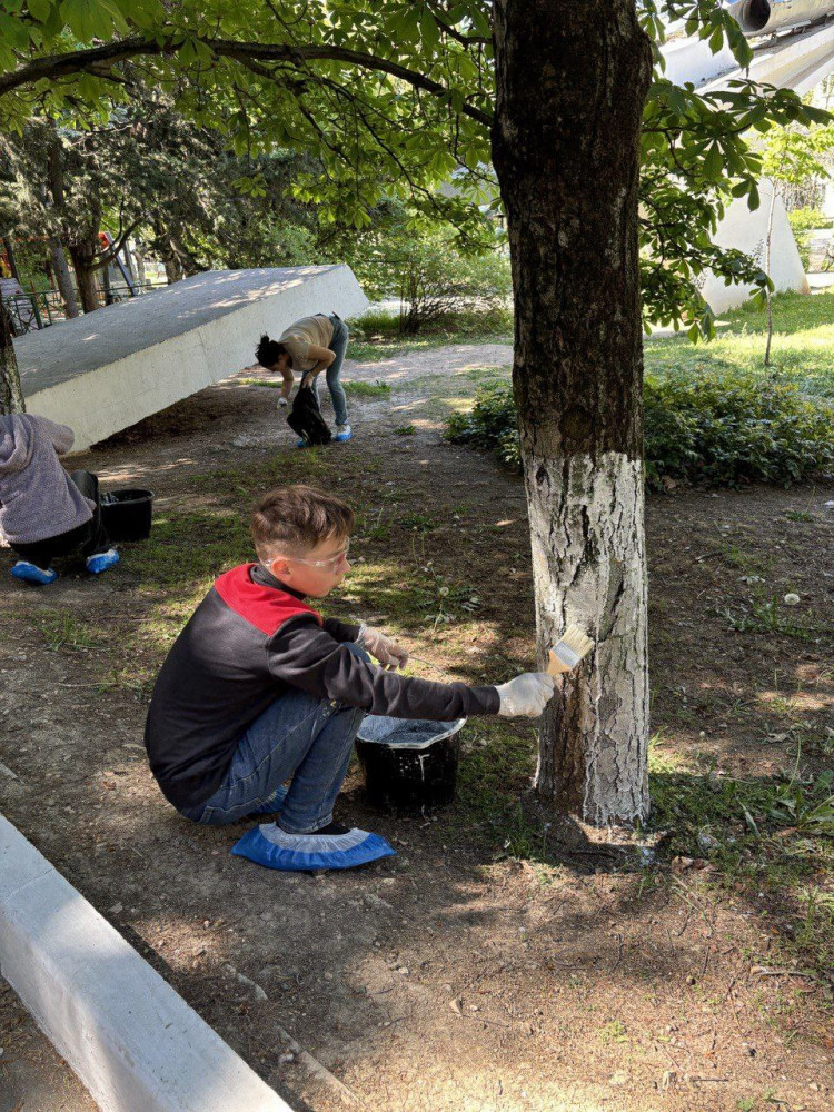 Дети и их родители вмести побелили и обкопали деревья, убрали мусор с территории, чтобы город-герой Севастополь стал краше и чище.