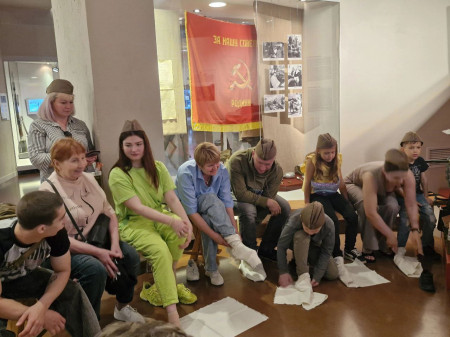 Дети семей военнослужащих стали участниками интерактивной игры «Фронтовой привал» в Музее «Третье ратное поле России». Ребята узнали, чем занимались солдаты во время привала, примерили на себе пилотки, научились наматывать портянки, спели фронтовые песни, поели варёную картошку, написали письма и даже получили посылку от другого дивизиона.