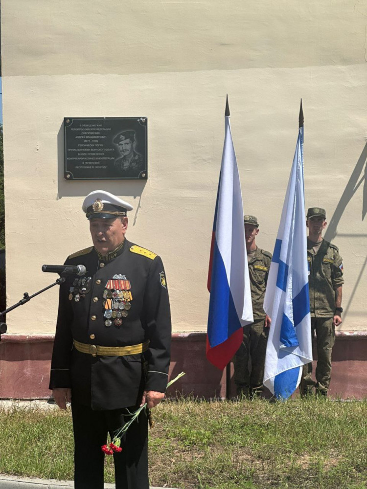 В посёлке Экипажный Приморского края увековечили память Героя России Андрея Днепровского. Вчера на острове Русский состоялось торжественное открытие мемориальной доски в его честь. Памятный знак установлен на фасаде дома № 2 по улице Зелёной, где в 90-е годы жил отважный морской пехотинец перед отправкой в Чечню.