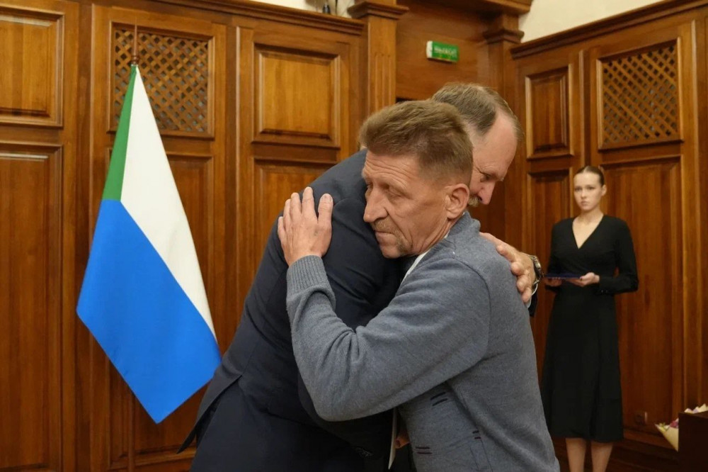 Сегодня награждения продолжились в Доме официальных приемов Правительства Хабаровского края. Медали вручили Фёдору Андреевичу Басалыге, Игорю Юрьевичу Голубковскому, Павлу Петровичу Лейману, Вячеславу Владимировичу Полянскому, Андрею Анатольевичу Коневу. Их сыновья героически погибли в зоне СВО.