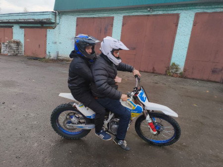 Для семьи Рунковых провели экскурсию, рассказали, в чём сложность управления спортивной техникой, дали примерить защитную экипировку и, конечно, прокатили детей! Экскурсия завершилась уютным чаепитием и тёплым общением.