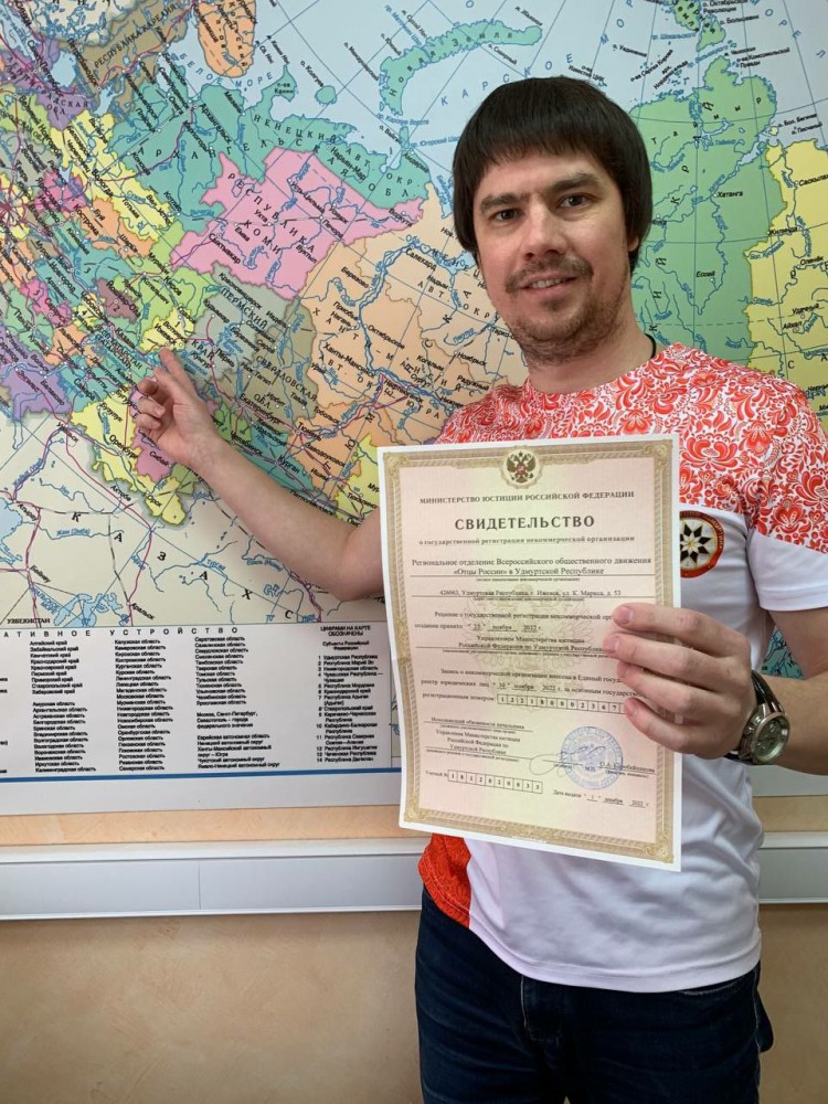 Отделение ВОД «Отцы России» в Удмуртии получило Свидетельство о регистрации в Министерстве юстиции Российской Федерации.