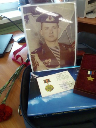 Александр Степанович рассказал ребятам личную историю. Он – отец Героя России и Абхазии. Его сын, Виталий Вольф, 30 лет назад погиб в Абхазии. Старший сержант восстановил связь с оперативной группой во время обстрела экстремистами охраняемой лаборатории и получил смертельное ранение в голову от осколка.