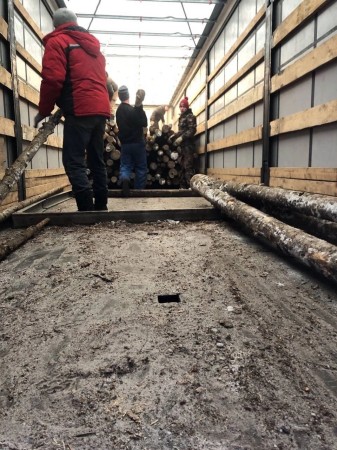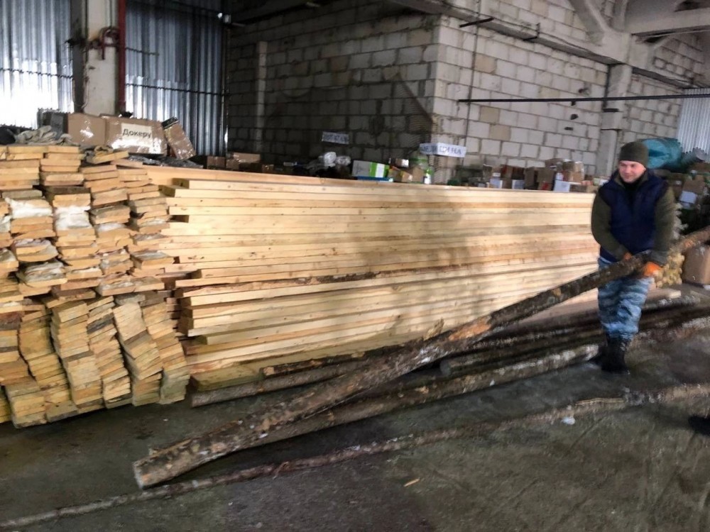 Но как же без мужской помощи! На выходных к складу приехала целая фура с лесом и пиломатериалами. Отцы помогают женщинам с погрузочно-разгрузочными работами и сортировкой гуманитарной помощи на складе. Лес и пиломатериалы отправят на прифронтовую территорию для обустройства блиндажей.