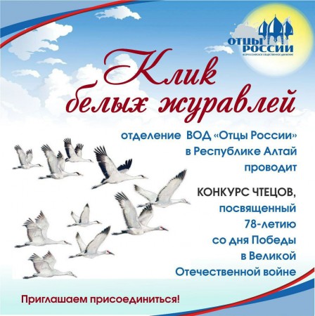 Региональное отделение ВОД «Отцы России» в Республике Алтай вместе с историко-родословным объединением «Моя родословная» при Национальной библиотекой имени М.В. Чевалкова запустили конкурс чтецов «Клик белых журавлей».