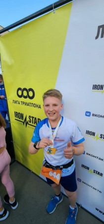 Взрослая программа состояла из трех этапов – 380 м плавание + 20,5 км велогонка + 5 км бег. Старший сын Фёдор преодолевал дистанцию вместе с отцом. А младшие Таислав и Добромир пробовали свои силы среди джуниоров. Дети стартовали с бегом и плаванием.