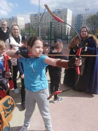 Ребята соревновались в стрельбе из лука, участвовали в эпичных схватках на безопасных мечах. А в импровизированном музее узнали историю холодного оружия, подержали в руках средневековый меч, шпагу времен мушкетёров.