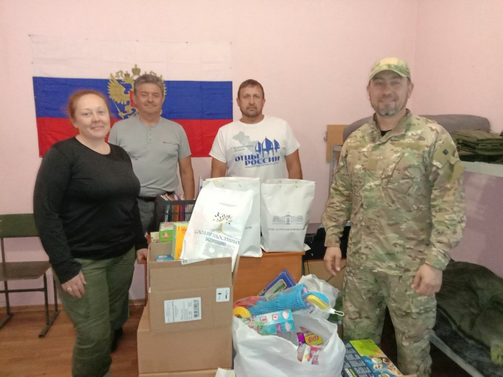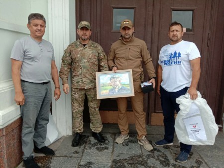 Отцы также навестили ребят из местного дома-интерната, привезли игрушки, канцелярские товары, сладости, а после встретились с командиром легендарного батальона «Спарта» Артёмом Жогой и передали ему подарок от астраханского художника.