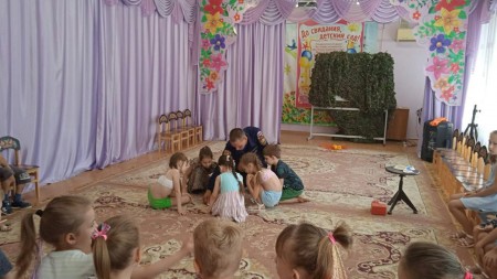 Ещё одно мероприятие прошло в детском саду №90. Отцы с коллегами организовали для ребят обучающую игру по пожарной безопасности. Самые активные ребята получили в подарок значки от Астраханского регионального отделения Всероссийского добровольного пожарного общества.