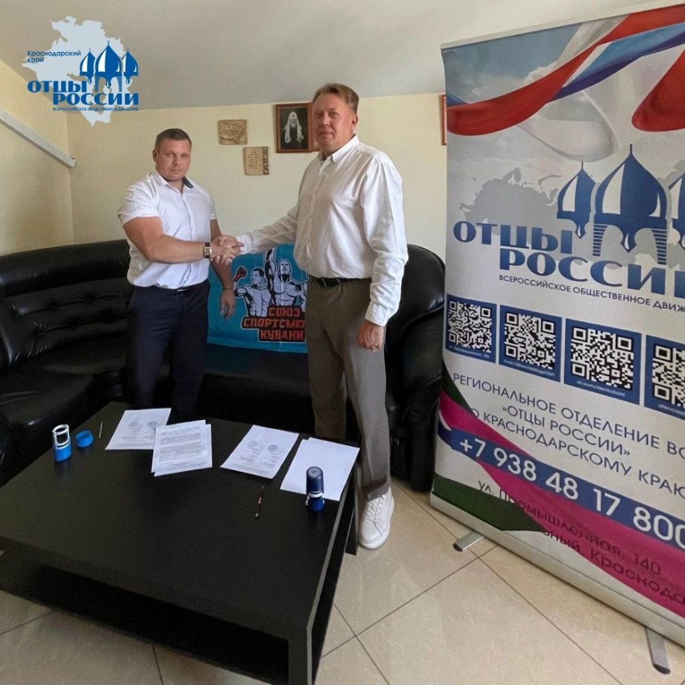 В конце прошедшей недели Председатель регионального отделения Всероссийского Общественного Движения «Отцы России» в Краснодарском крае Павел Ерагер и президент Союза спортсменов Кубани Сергей Коновалов подписали соглашение о сотрудничестве.