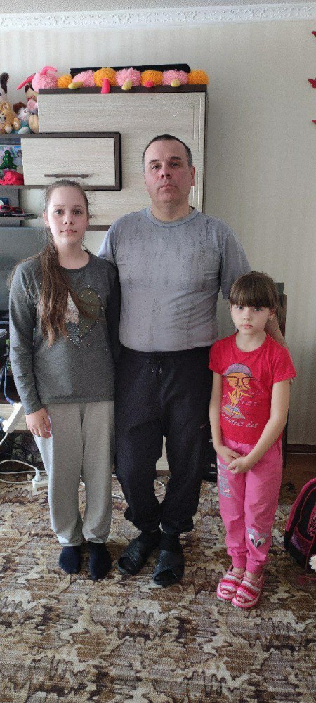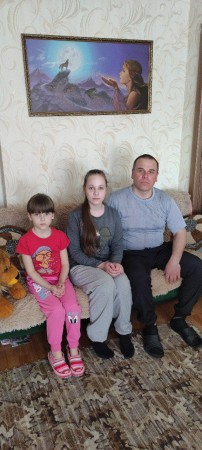 Мужчина работает в Волновахе, занимается ремонтом сельскохозяйственной техники. Девочки учатся в школе. Семья живет в своей небольшой квартире, доход складывается из зарплаты отца и пенсии по потере кормильца.