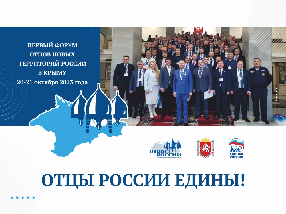 20-21 октября 2023 года в Крыму состоялся Первый форум отцов новых территорий «Отцы России едины», который объединил более 500 отцов.